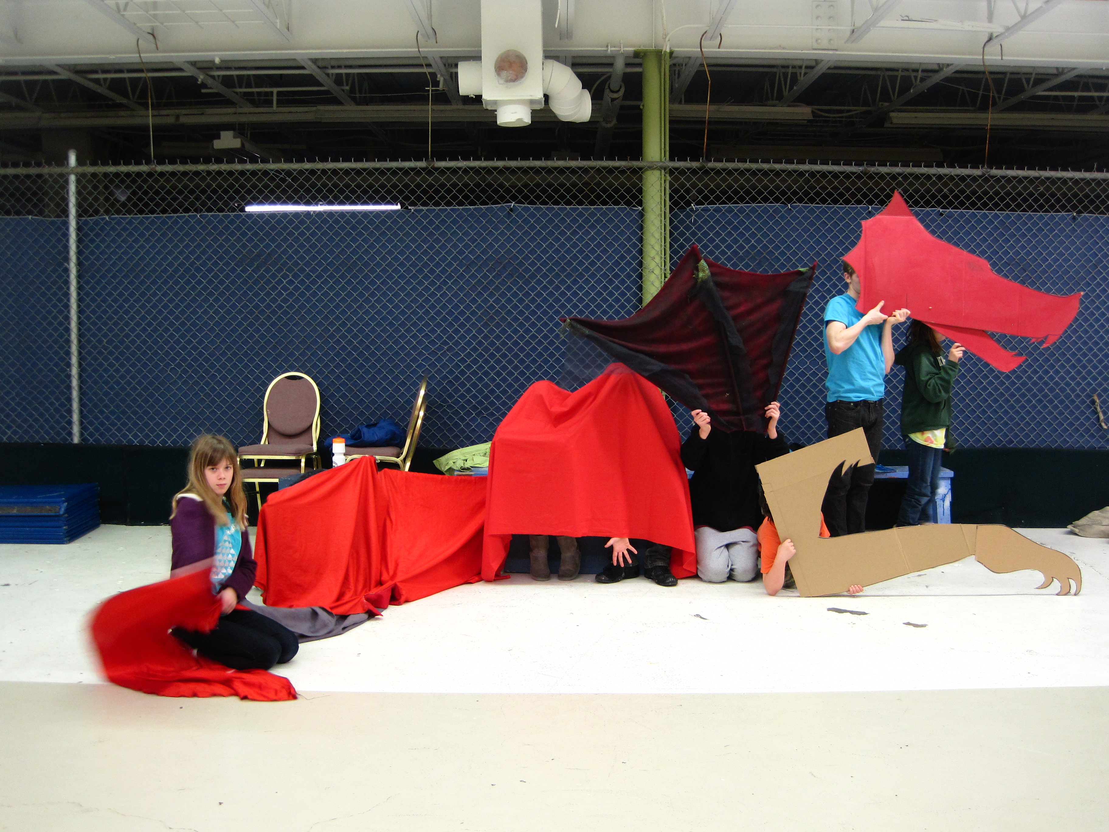 Smaug rehearsal for The Hobbit. Alaska Theatre of Youth, February 2012.